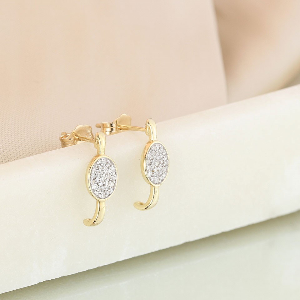 9ct Oval Pave-Set Diamond Cluster J-Wedding Earrings - D96101