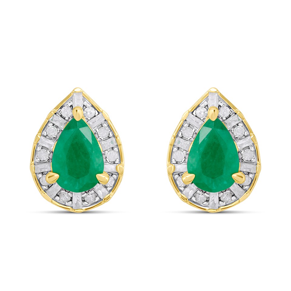 9ct Pear Emerald And Diamond Cluster Stud Earrings - D96118