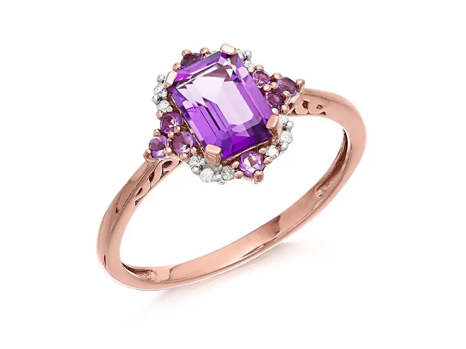9ct Rose Gold Amethyst And Diamond Ring - D8451