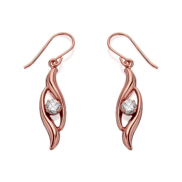 9ct Rose Gold Cubic Zirconia Flame Hook Wire Drop Earrings - 29mm drop - G2820