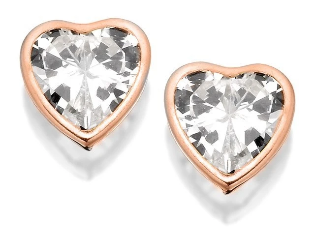 9ct Rose Gold Cubic Zirconia Heart Stud Earrings - G2759