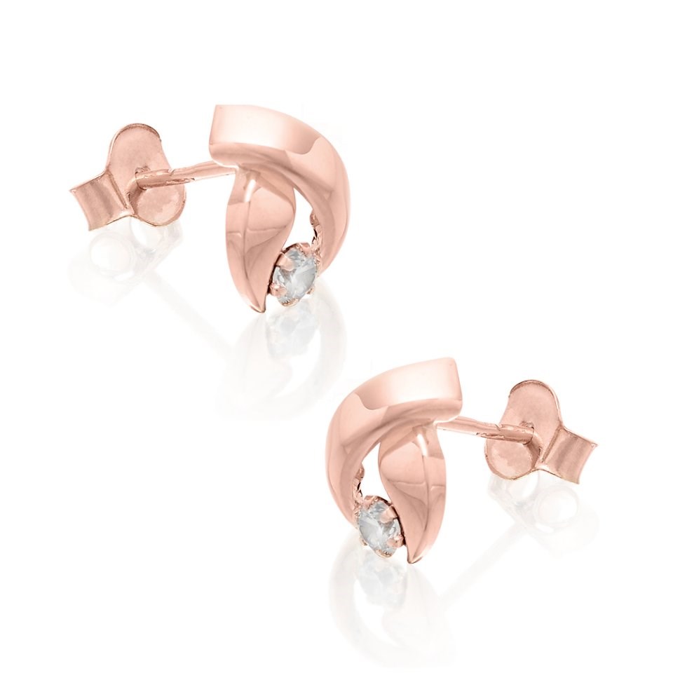 9ct Rose Gold Cubic Zirconia Twist Stud Earrings - 8mm - G2740