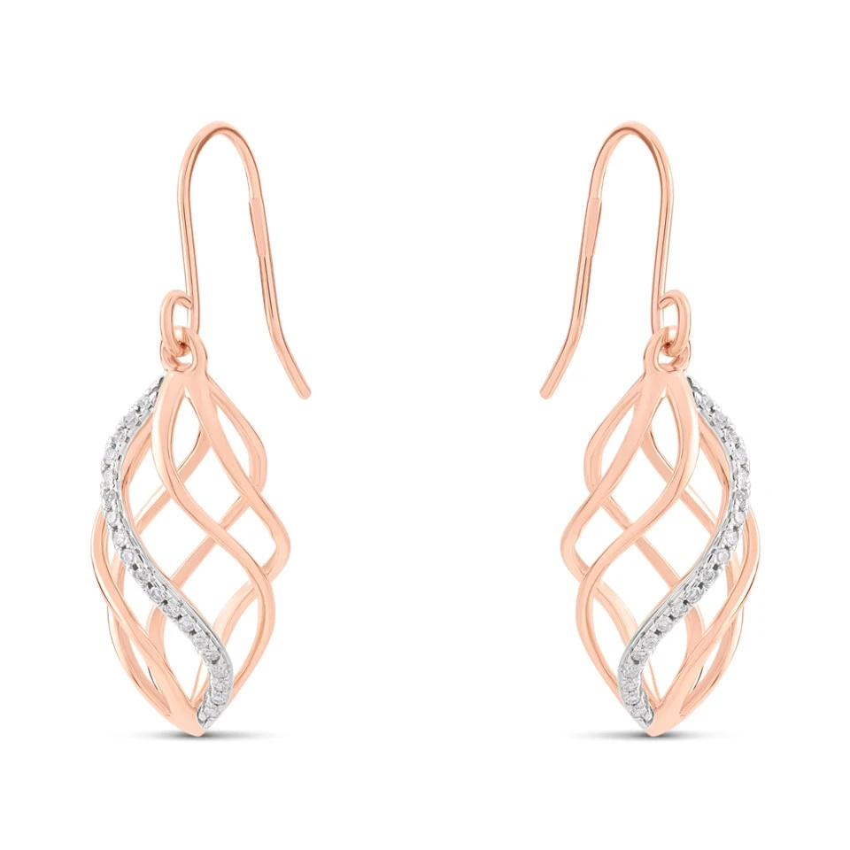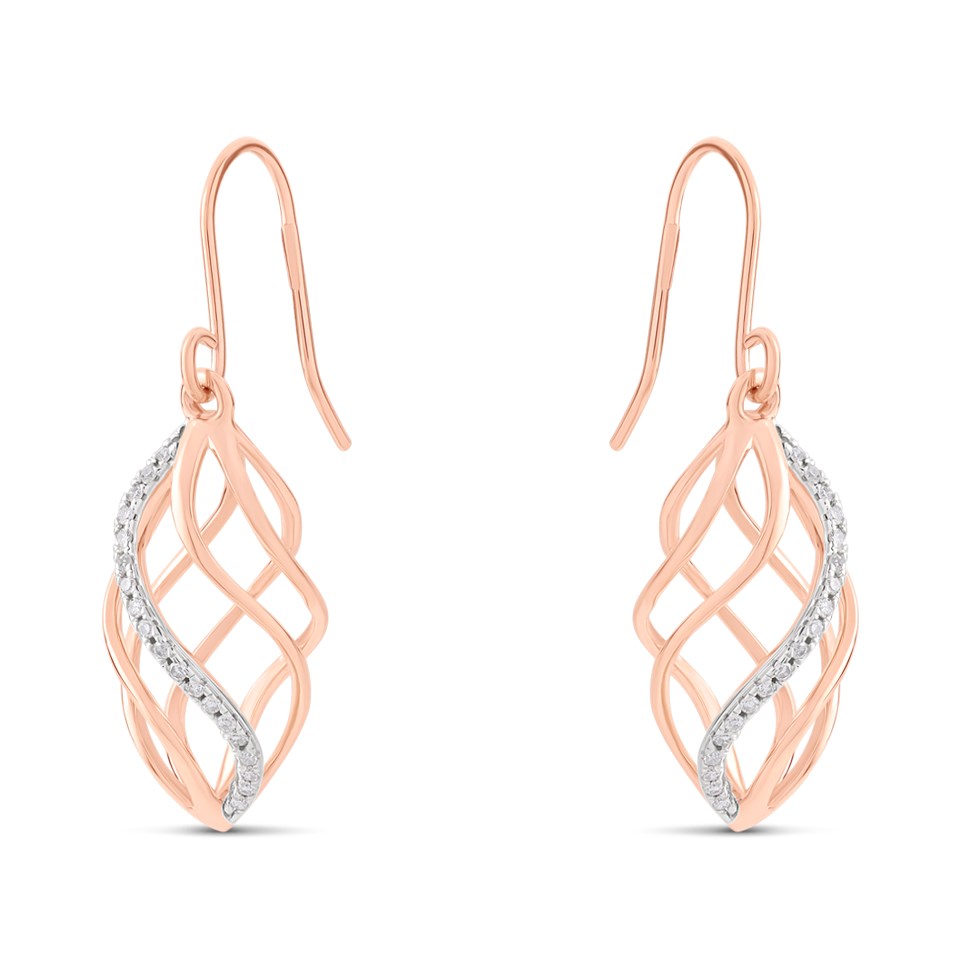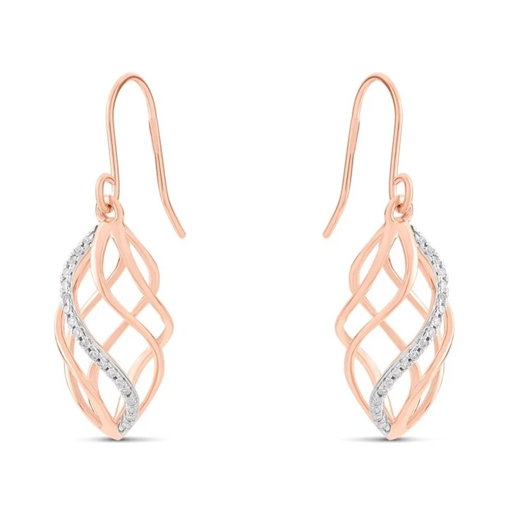 9ct Rose Gold Diamond Hook-Wire Basket Drop Earrings - D78102