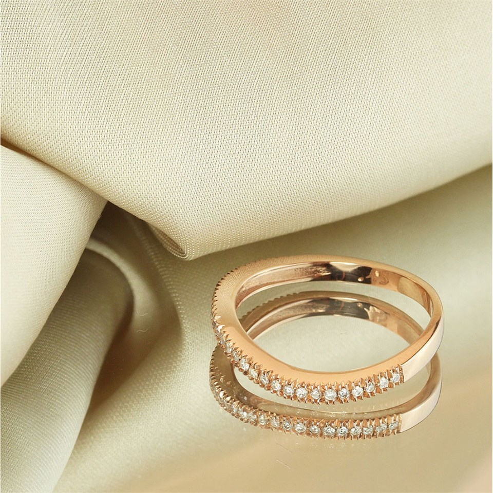 9ct Rose Gold Diamond Wave Half-Eternity Ring, 15pts - D7874