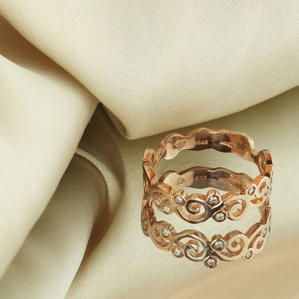 9ct Rose Gold Diamond-Set Swirl Ring - D78101