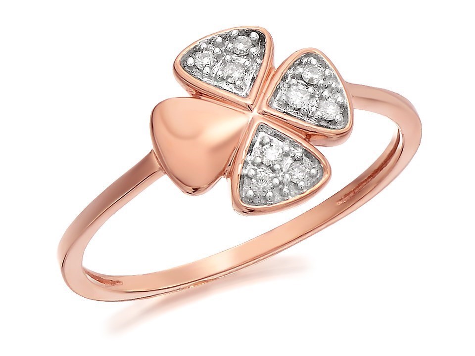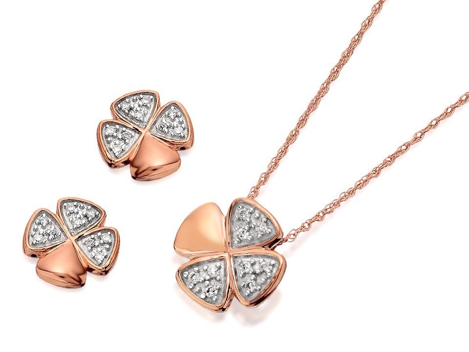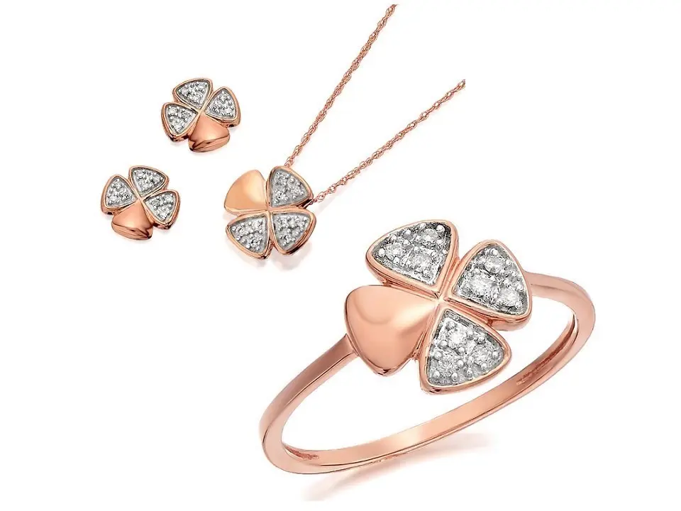 9ct Rose Gold Four Leaf Clover Ring, Earrings And Necklace Gift Set - 15pts - D8604