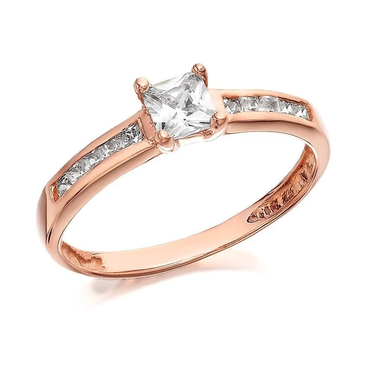 9ct Rose Gold Princess Cut Cubic Zirconia Ring - R5913-Q