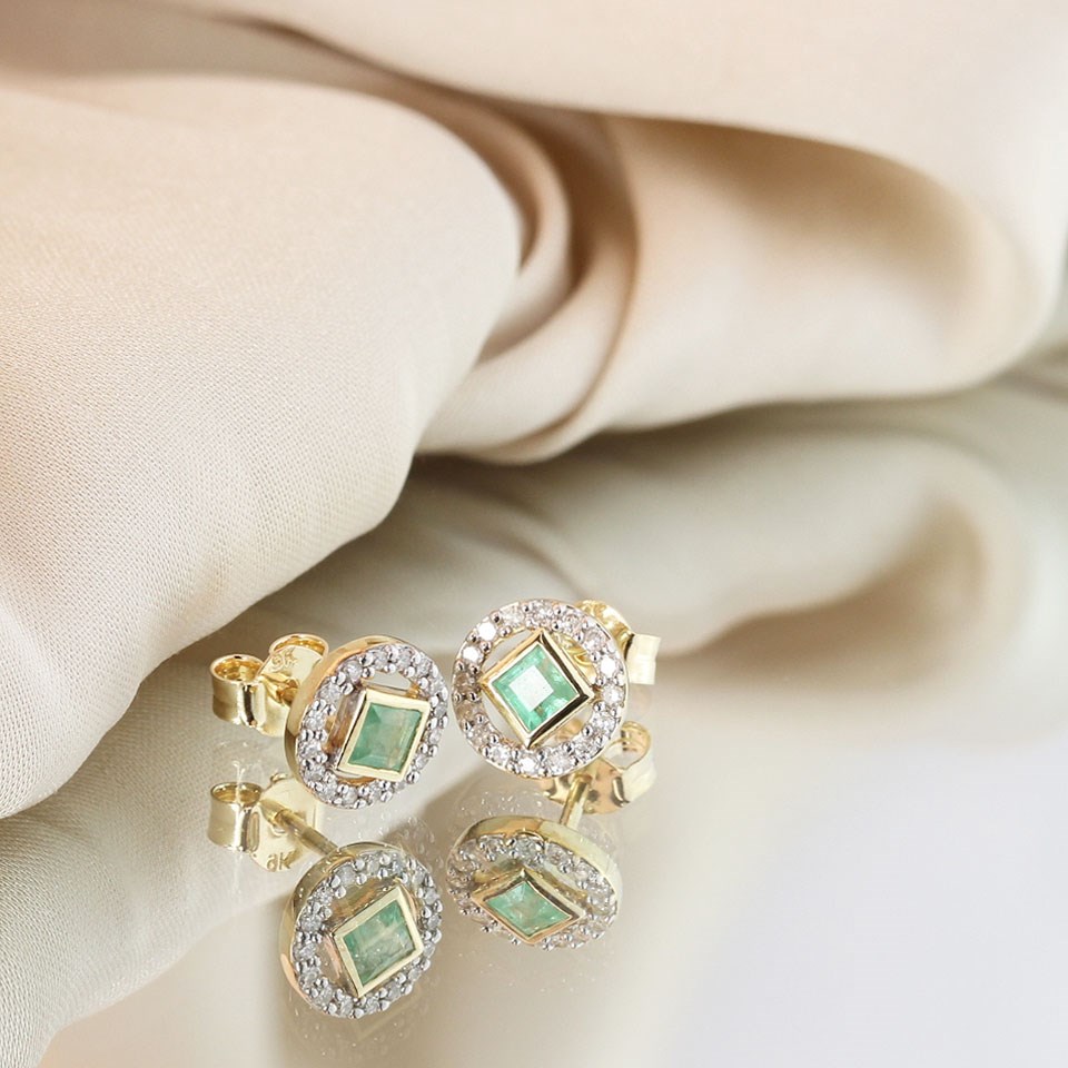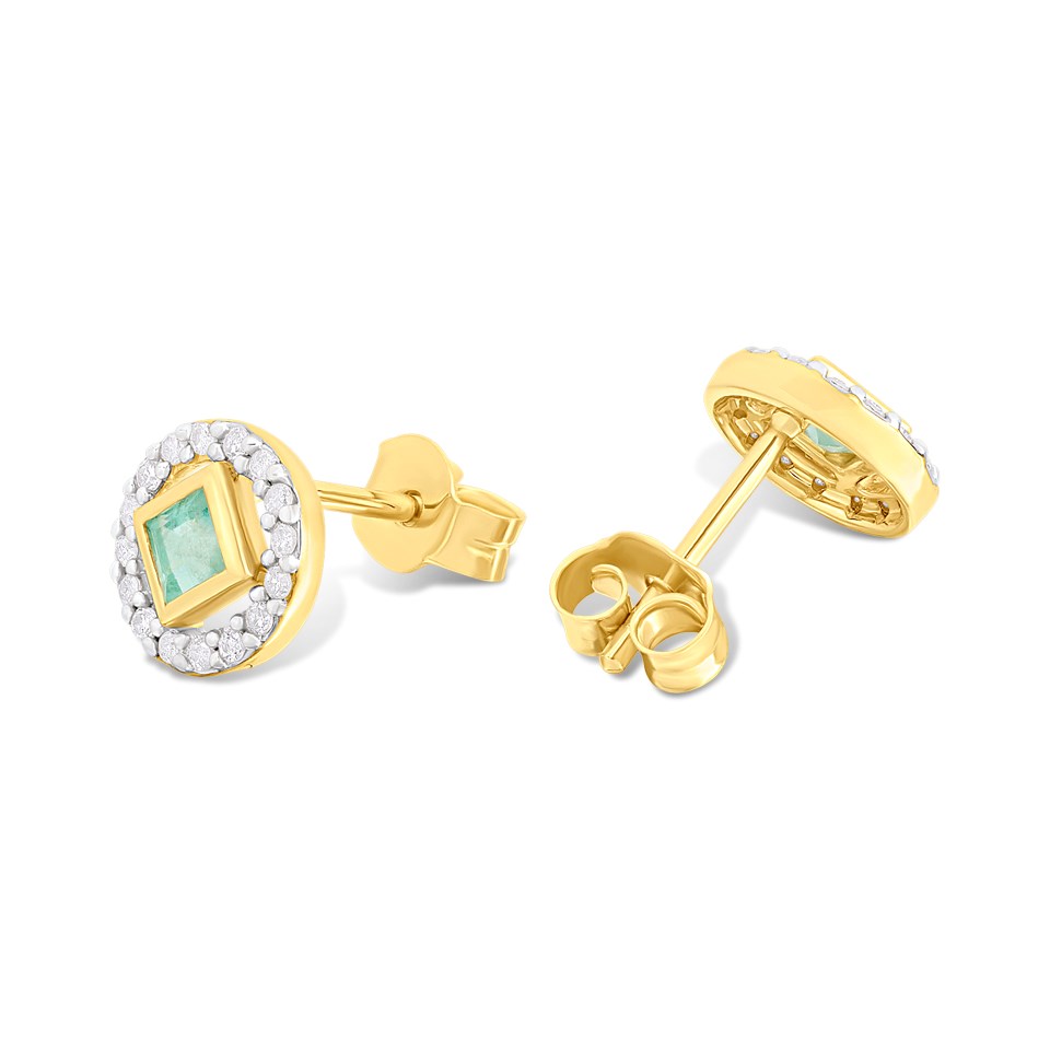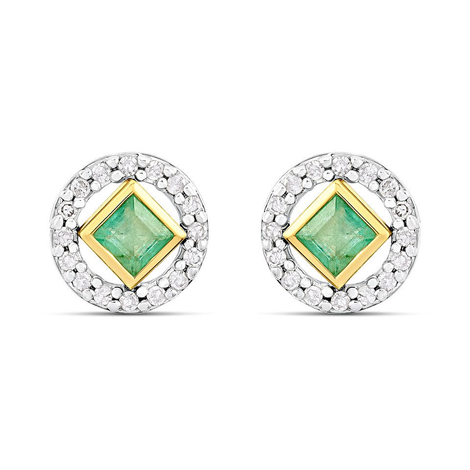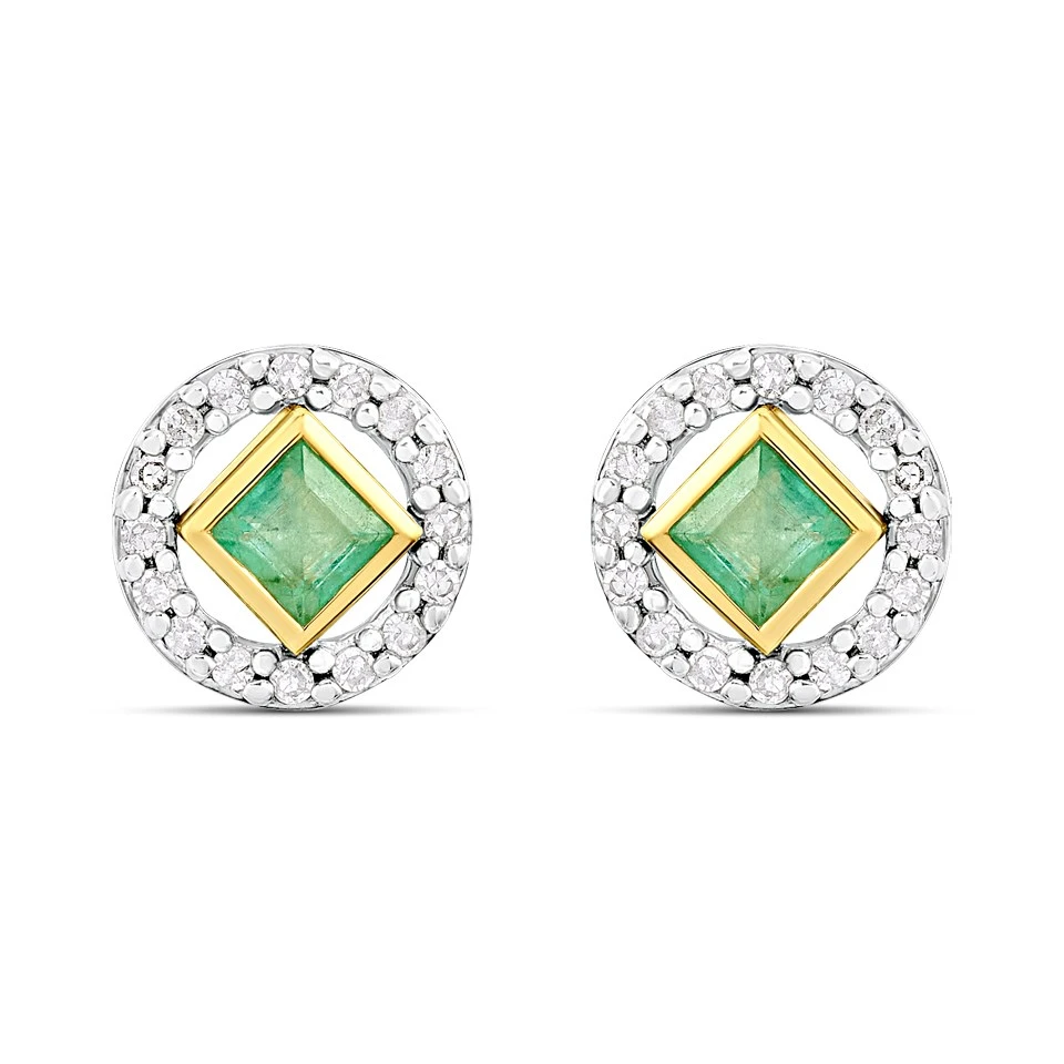 9ct Round Diamond And Emerald Fancy Stud Earrings - D94134