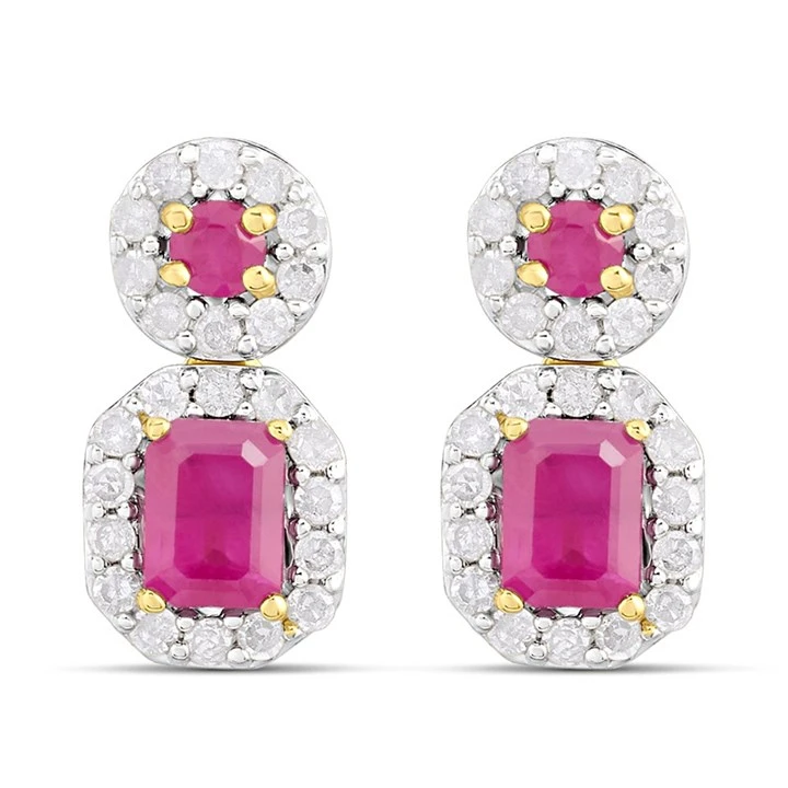 9ct Ruby And Diamond Double Cluster Drop Earrings - D94132