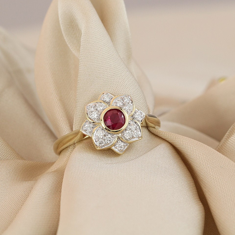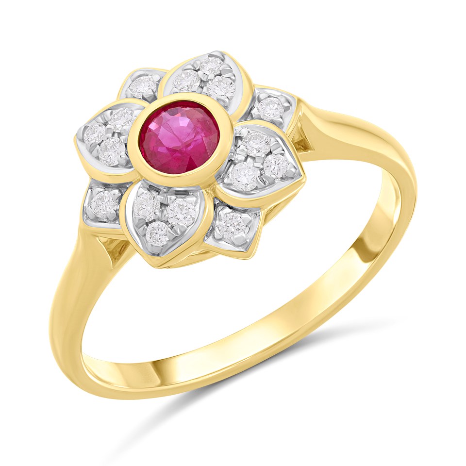 9ct Ruby & Diamond Round Cluster Ring - D7447