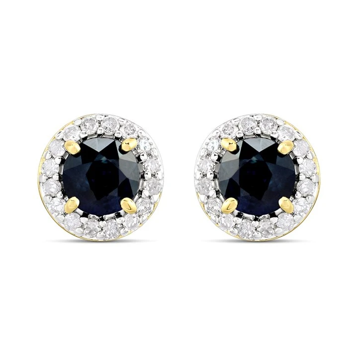 9ct Sapphire And Diamond Cluster Stud Earrings - D94130