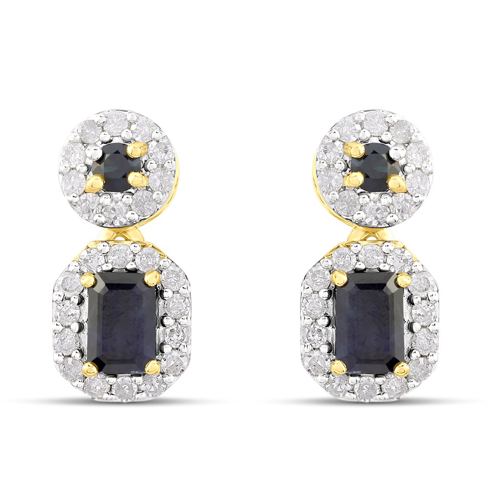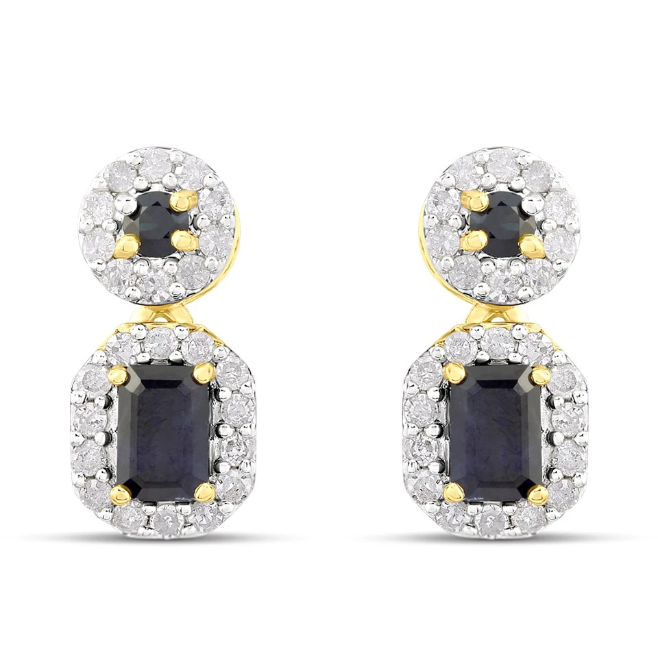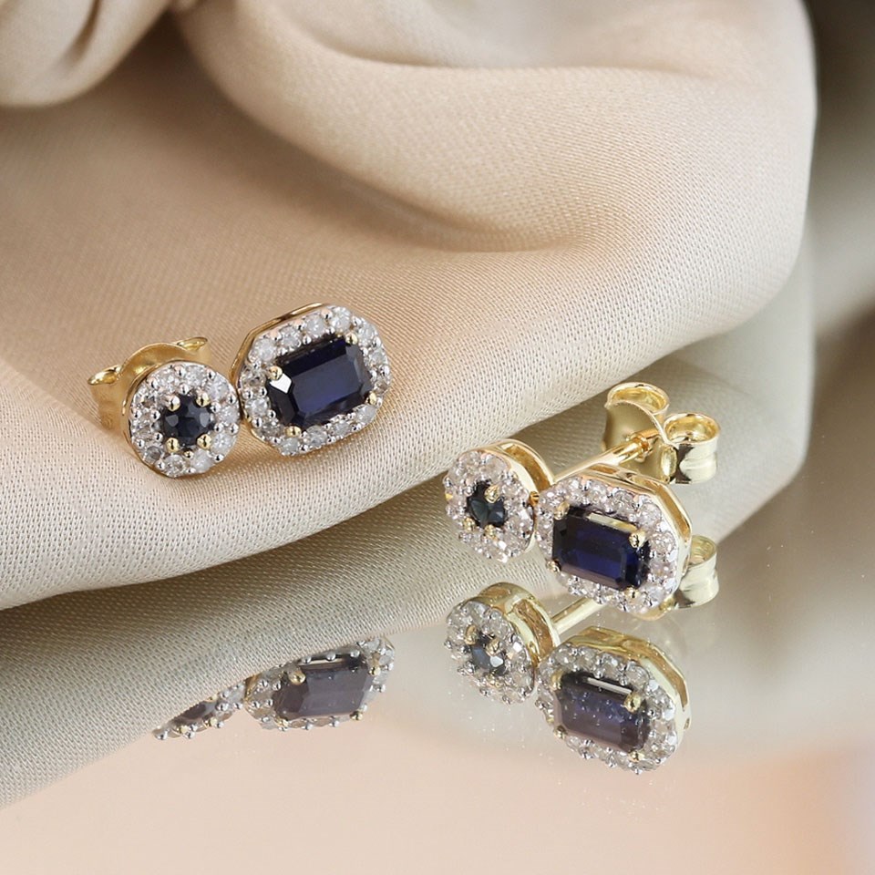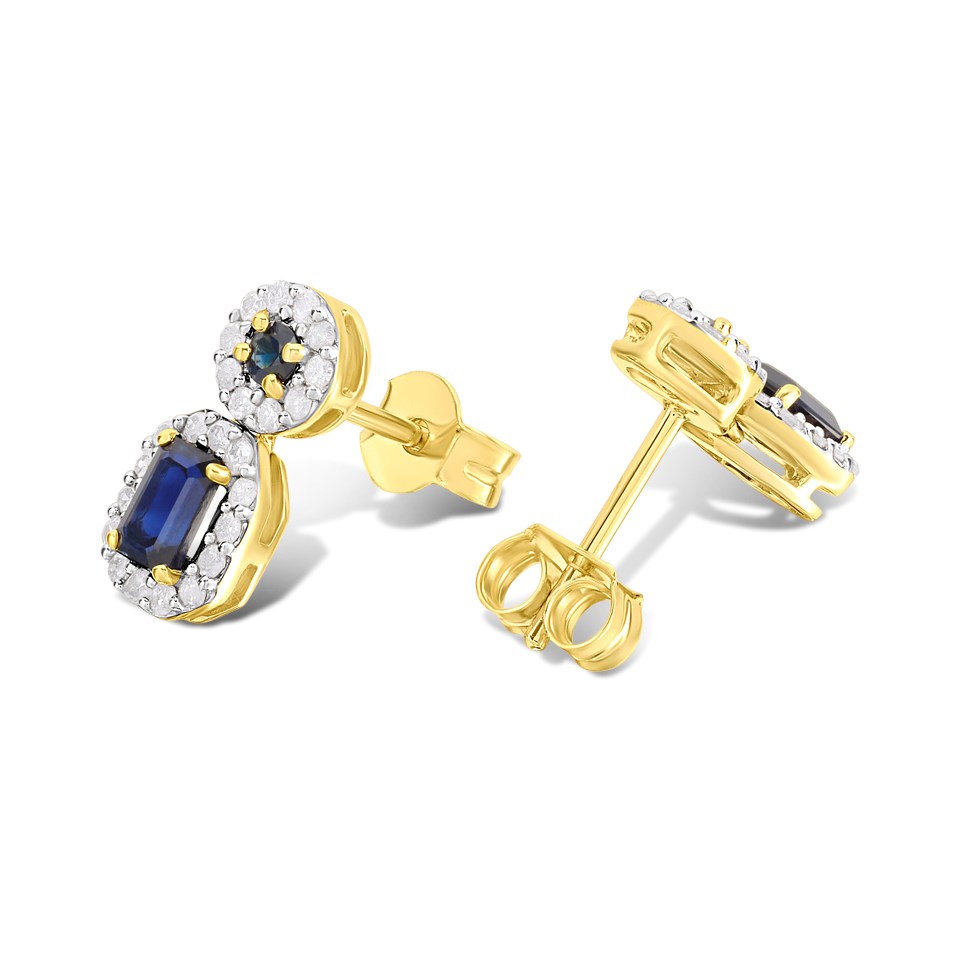 9ct Sapphire And Diamond Double Cluster Drop Earrings - D94131
