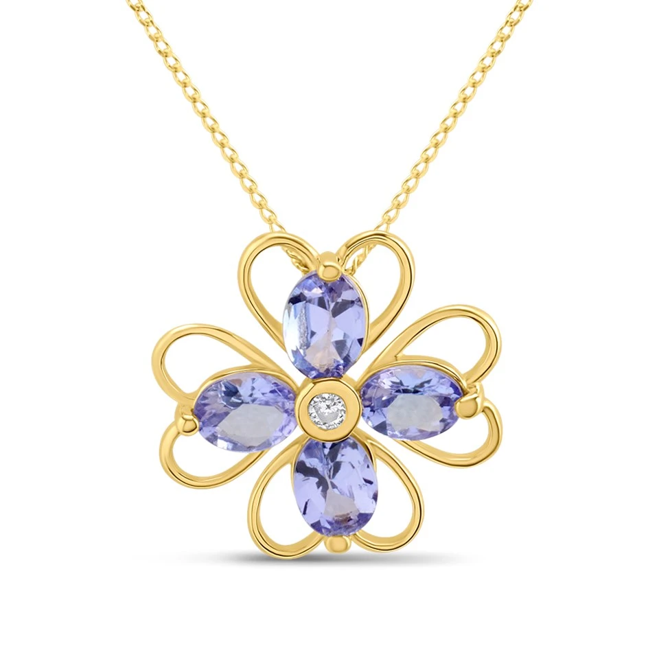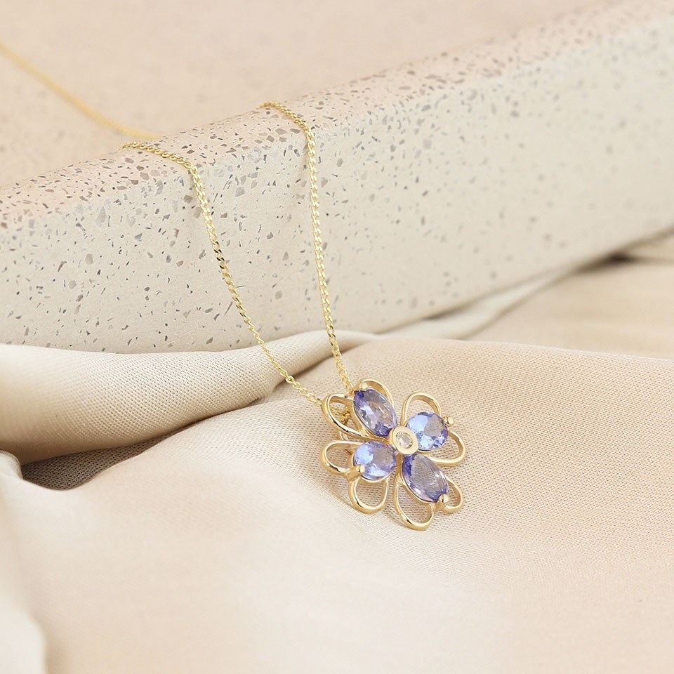 9ct Tanzanite And Diamond Flower Necklace - D97140