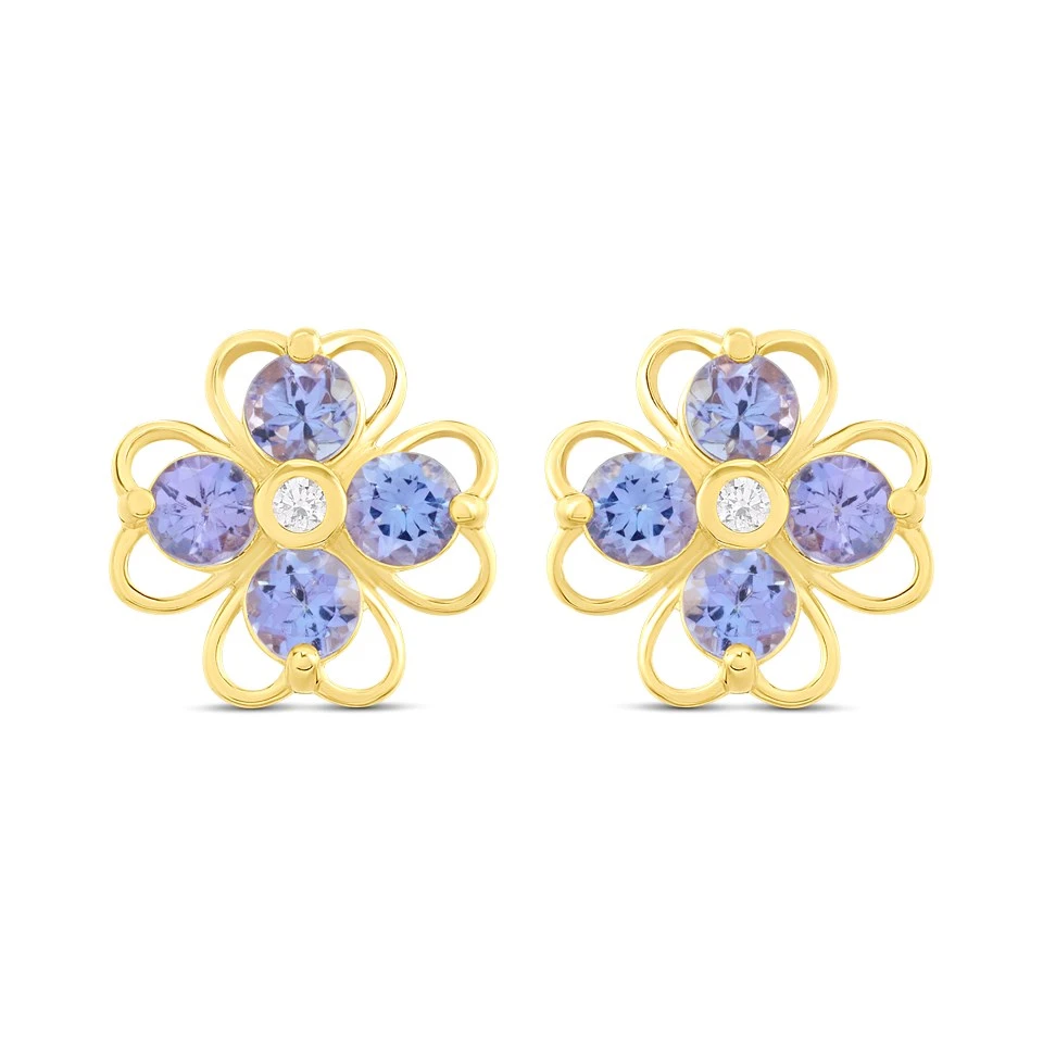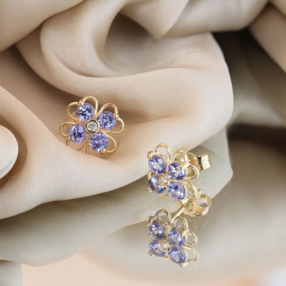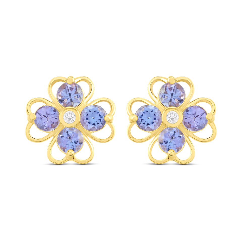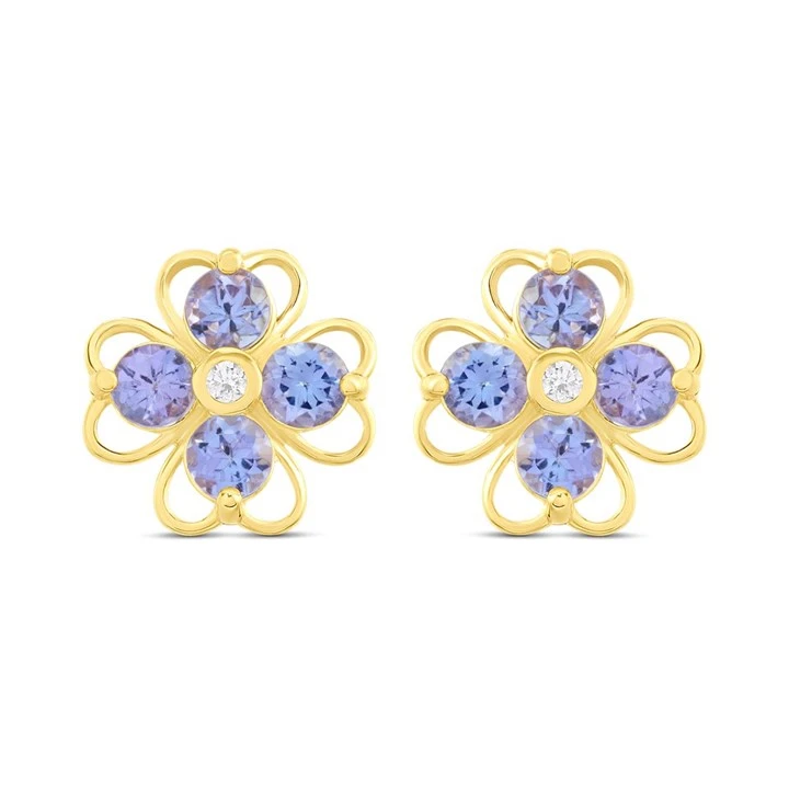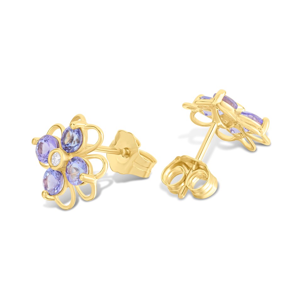 9ct Tanzanite And Diamond Flower Stud Earrings - D96111