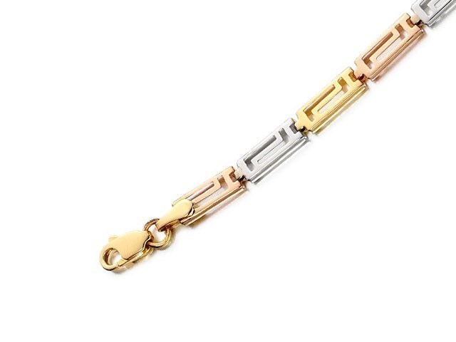 9ct Three Colour Gold 4mm Wide Greek Key Necklet - 16in - EXCLUSIVE - R9567