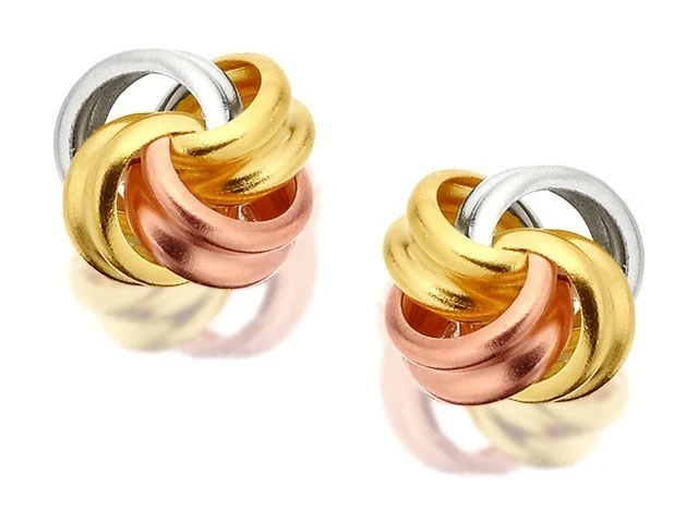 9ct Three Colour Gold Knot Stud Earrings - 6.5mm - G4665