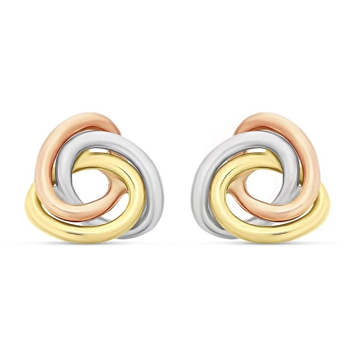 9ct Three Colour Gold Knot Stud Earrings - 8mm - G4635