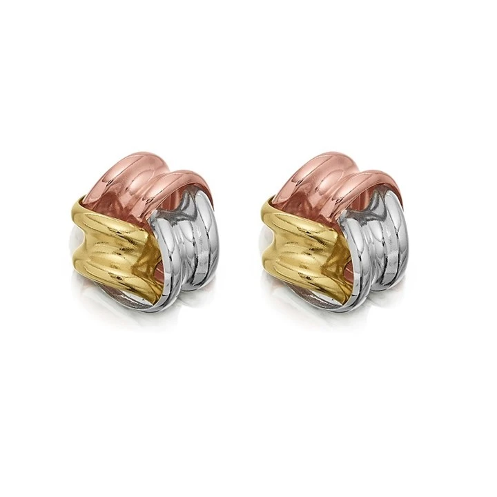 9ct Three Colour Gold Knot Stud Earrings - 8mm - G4654