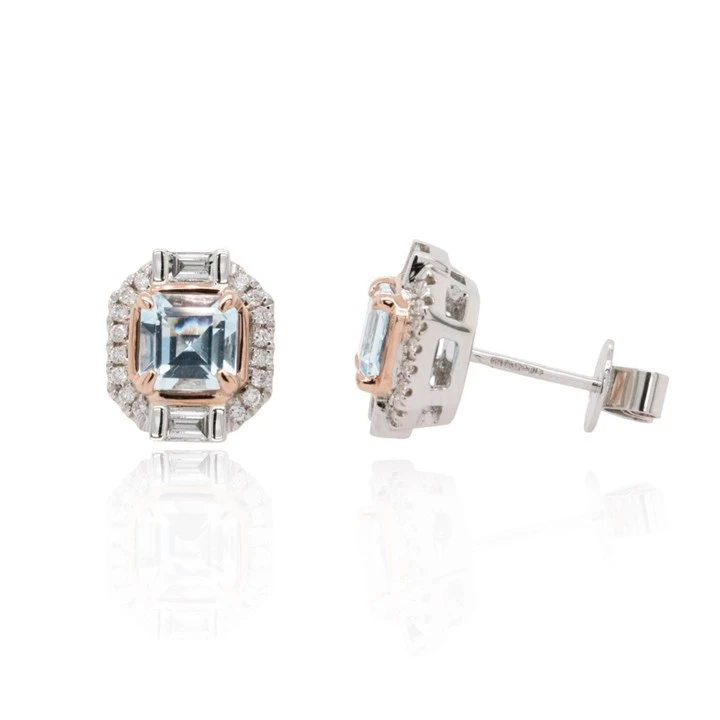 9ct Two Colour Gold Aquamarine And Diamond Stud Earrings - 1/4ct per pair - D94111