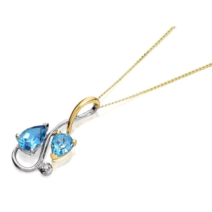 9ct Two Colour Gold Blue Topaz And Diamond Necklace - R8396