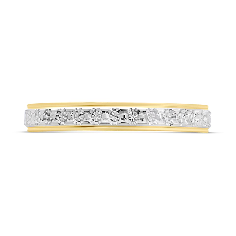 9ct Two Colour Gold Diamond Cut Wedding Ring - 3mm - R1613
