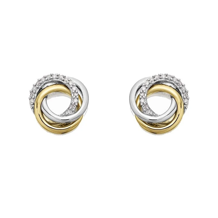 9ct Two Colour Gold Diamond Knot Stud Earrings - D9651