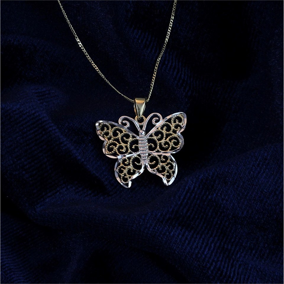 9ct Two Colour Gold Filigree Butterfly Necklace - R8768