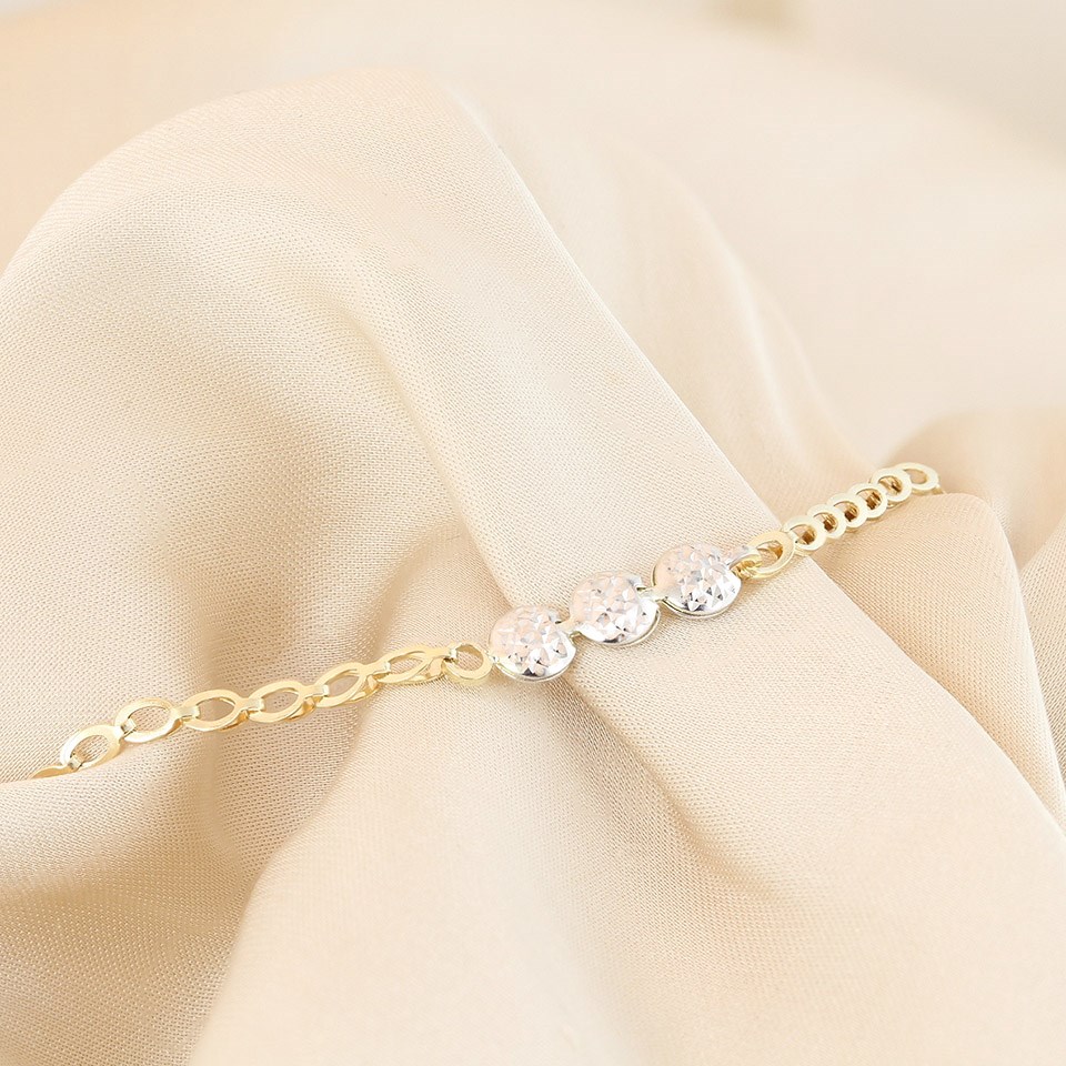 9ct Two Colour Gold Link And Disk Anklet - 10in - G7909
