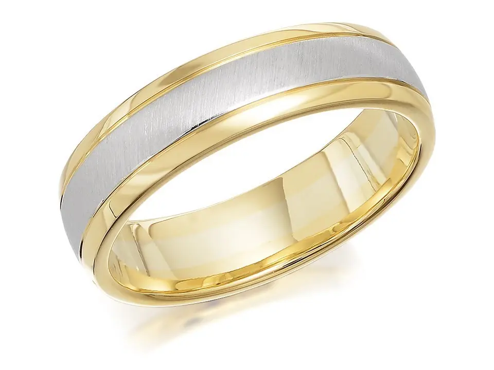 9ct Two Colour Gold Satin And Polished Wedding Ring - 5mm - R4283