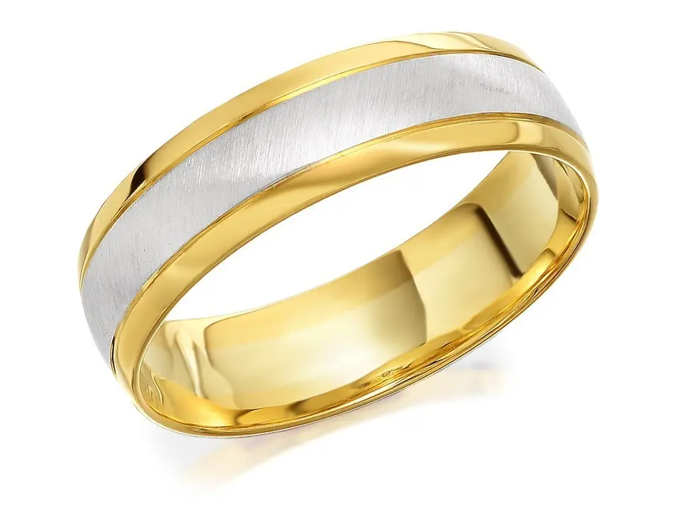 9ct Two Colour Gold Satin Finish Wedding Ring - 6mm - R4233