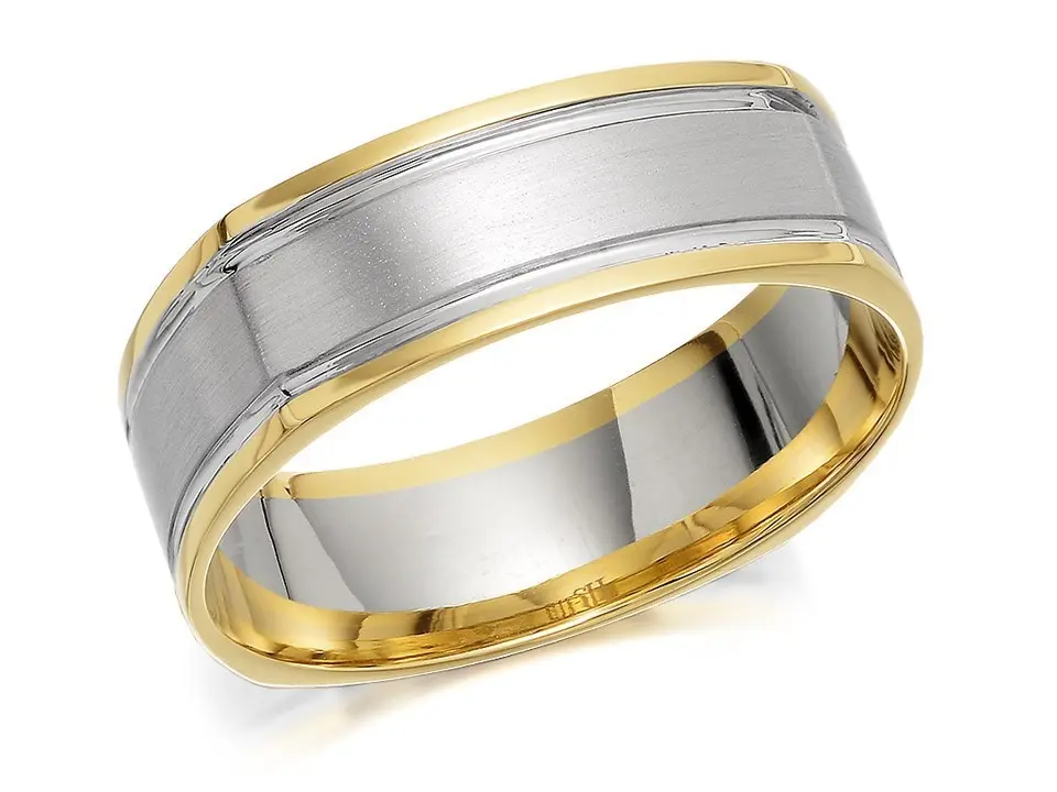 9ct Two Colour Gold Squared Edged Wedding Ring - 7mm - R4537