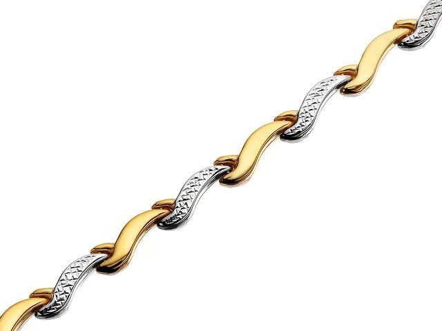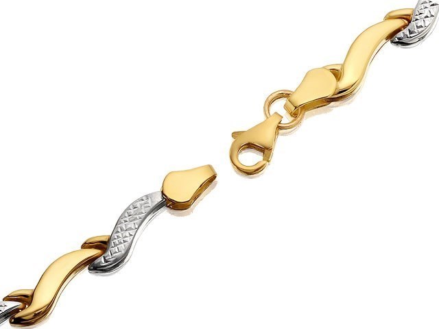 9ct Two Colour Gold Wave Link Bracelet - 7.5in - G6505