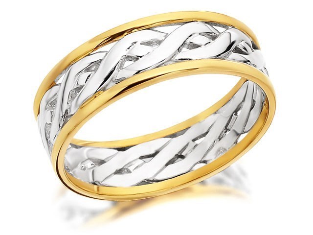 9ct Two Colour Gold Weave Wedding Ring - 6mm - R4379