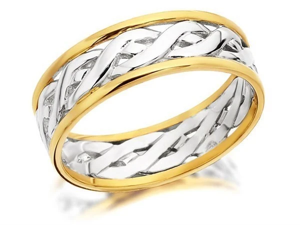9ct Two Colour Gold Weave Wedding Ring - 6mm - Size H Only - Z50404