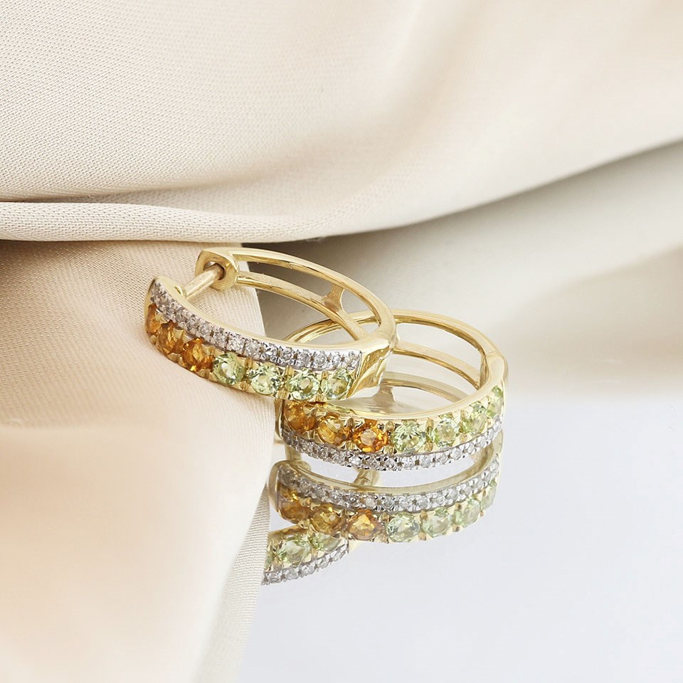 9ct Two Row Citrine, Peridot And Diamond Huggie Earrings - D94127