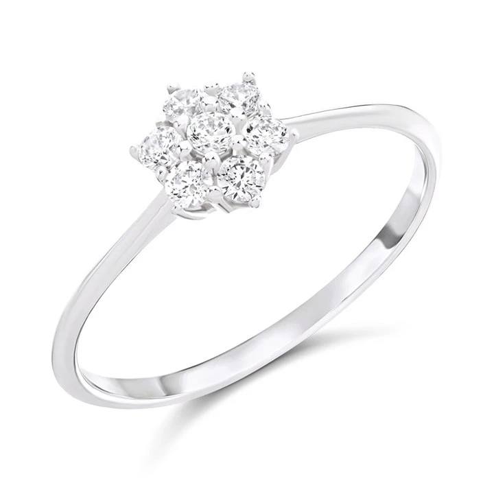 9ct White Cubic Zirconia Gold Cluster Ring - R6571-O