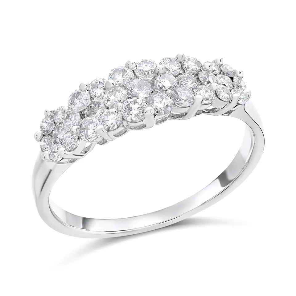 9ct White Gold 1 Carat Diamond Cluster Band Ring - Z5129