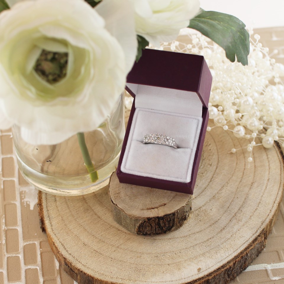Similar to dress rings, wide band rings are usually worn for special occasions and offer an alternative to the slimmer, single row eternity ring. As band rings are often wider than the average engagement, eternity or dress ring, we recommend selecting at least one ring size larger than usual to accommodate the wide setting.
