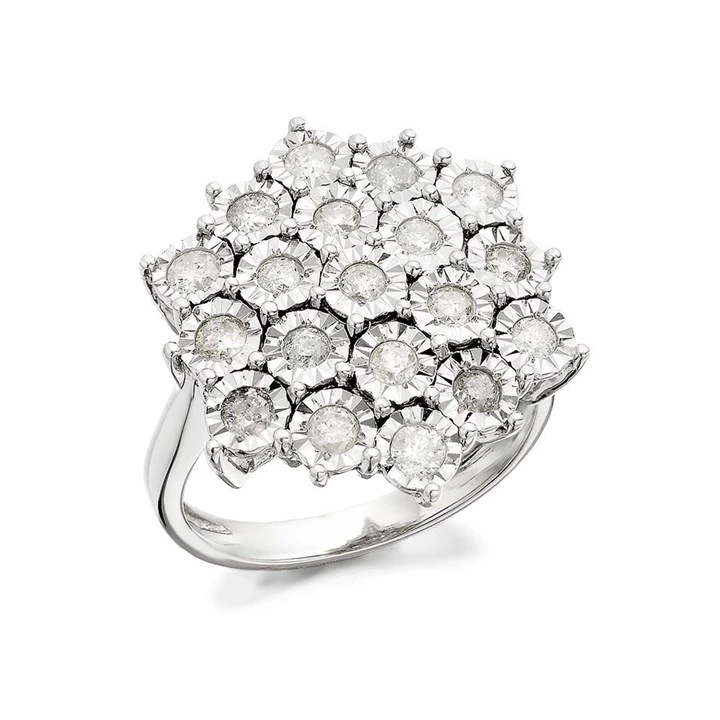9ct White Gold 1 Carat Diamond Cluster Ring - D7209