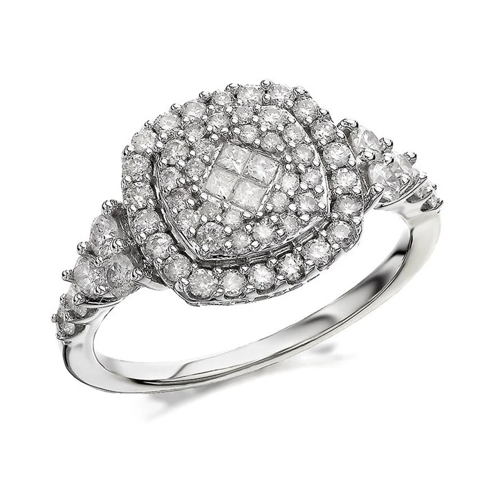 9ct White Gold 1 Carat Diamond Cushion Cluster Ring - D7224