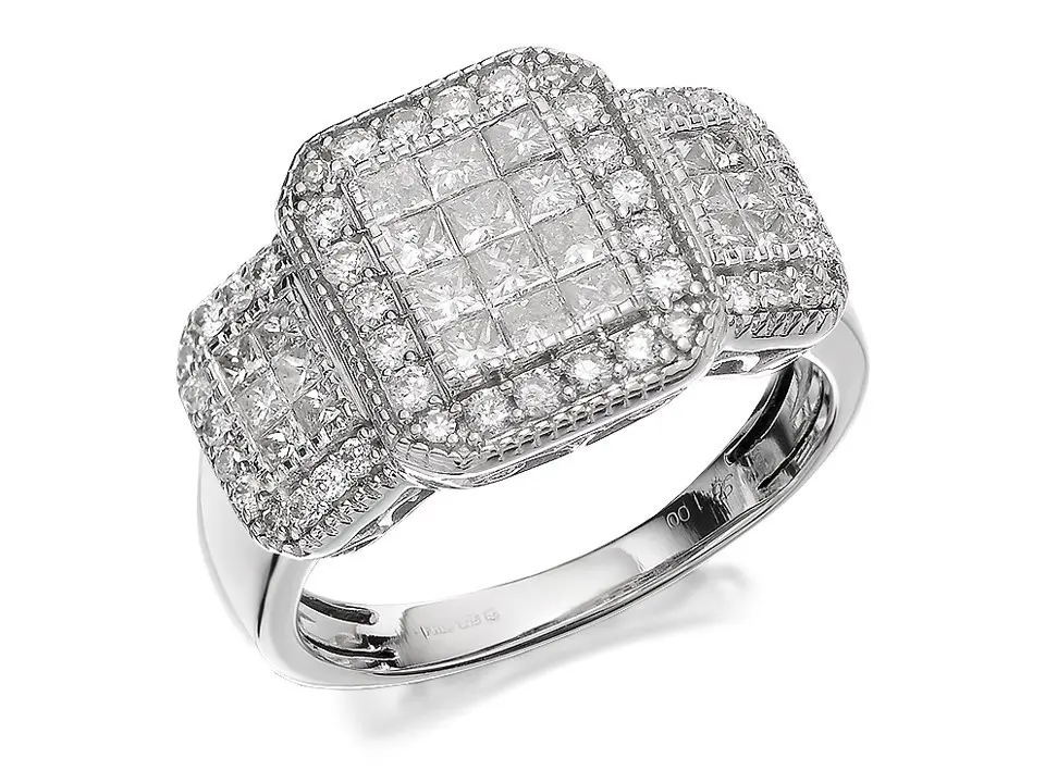9ct White Gold 1 Carat Diamond Trio Cluster Ring - D7287
