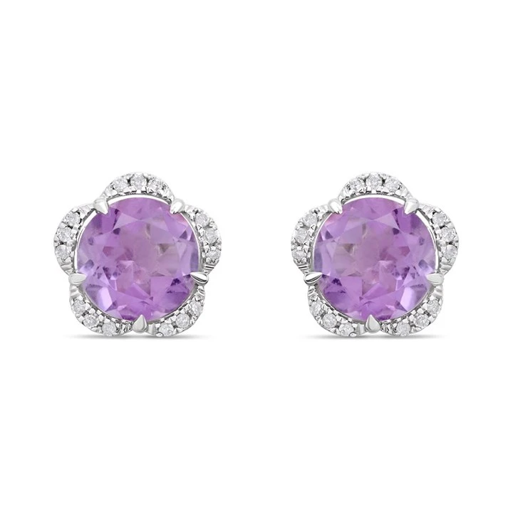 9ct White Gold Amethyst And Diamond Stud Earrings - D94126