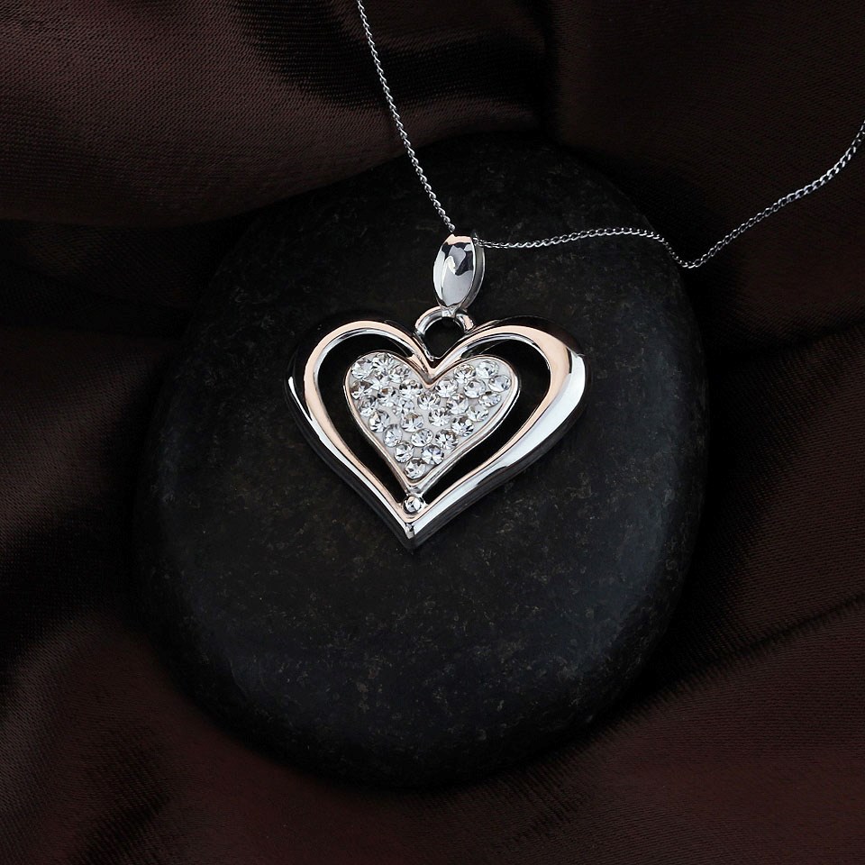 9ct White Gold And Crystal Double Heart Necklace - R8281