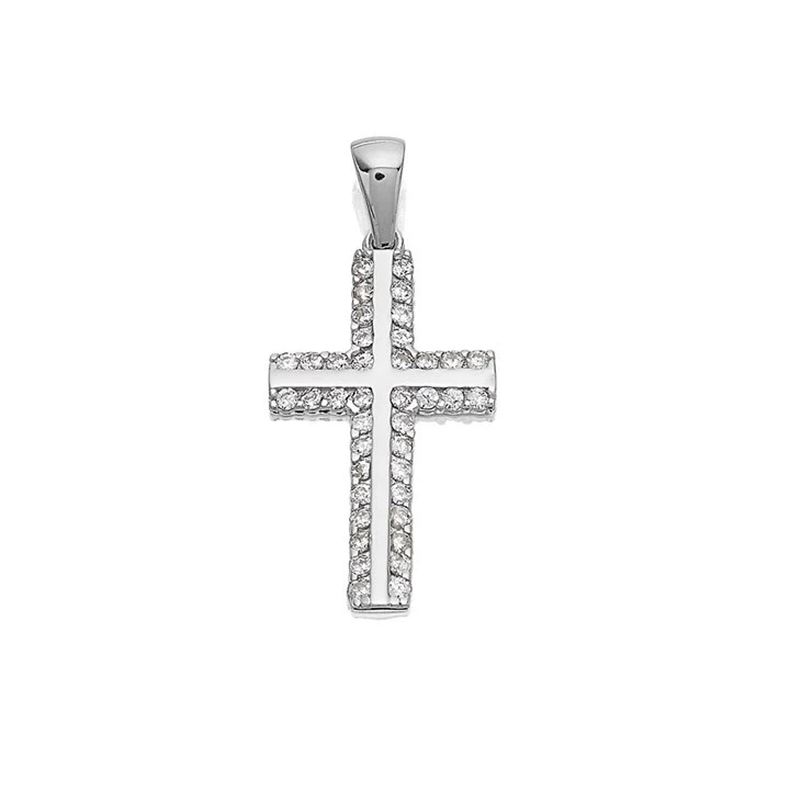9ct White Gold And Cubic Zirconia Cross - R6336