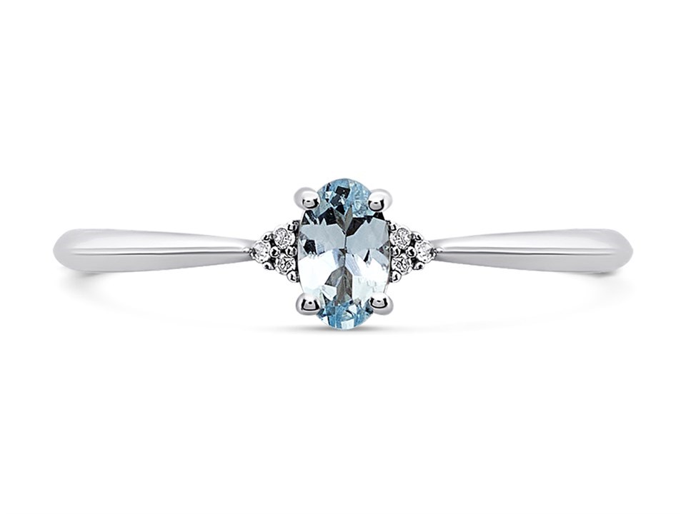 9ct White Gold Aquamarine And Diamond Birthstone Ring - March - R0956