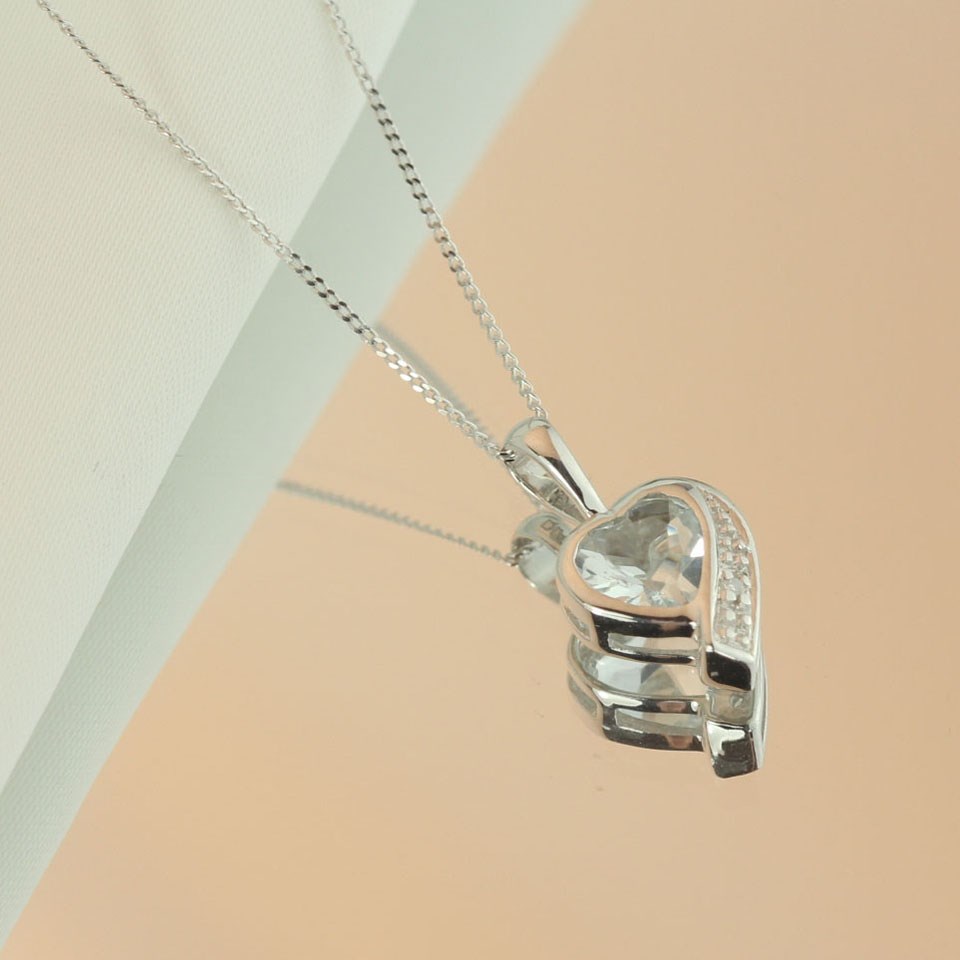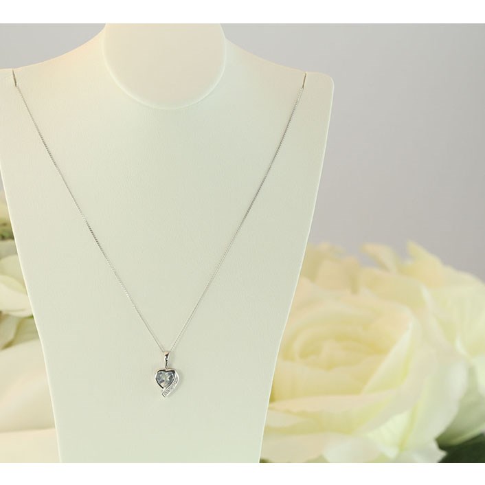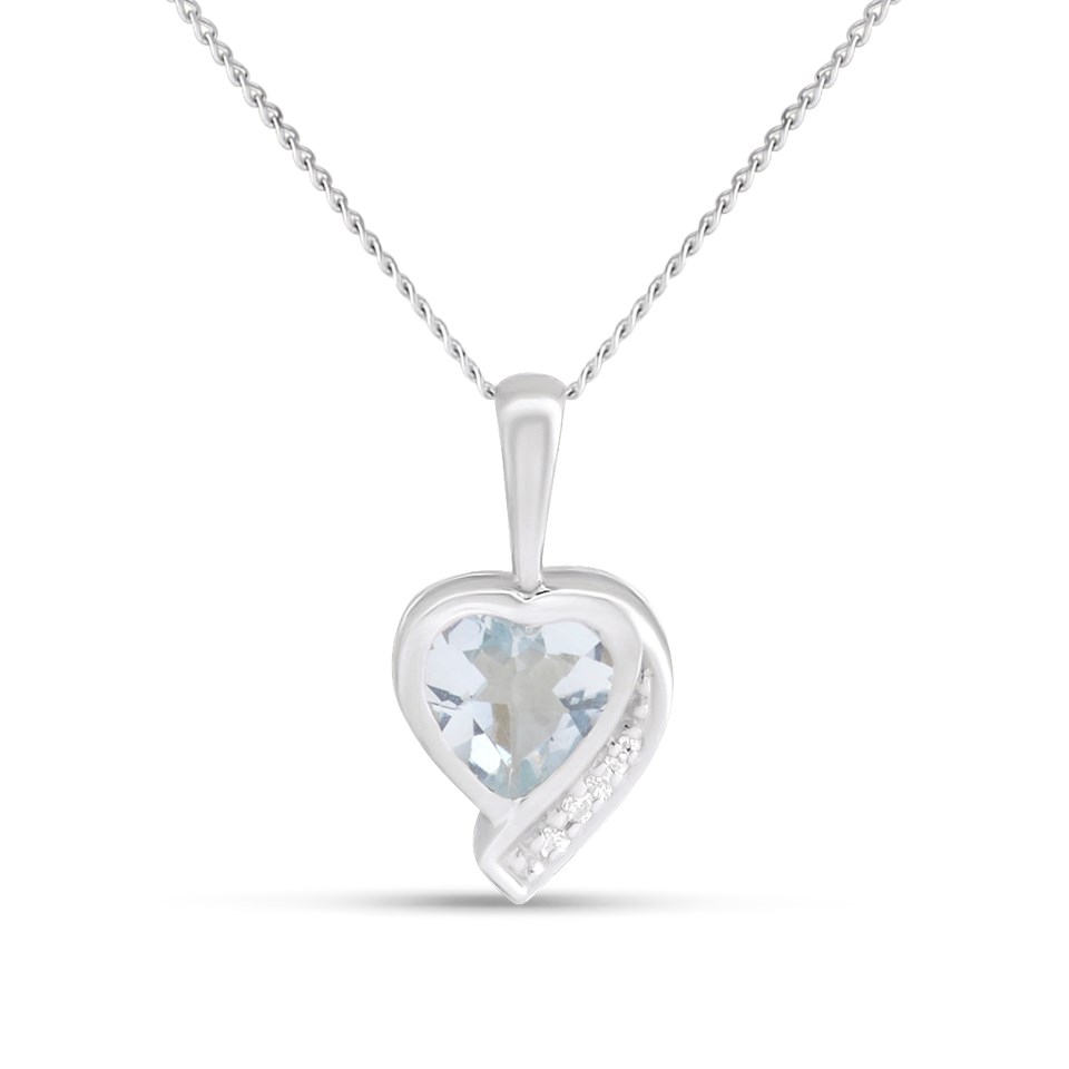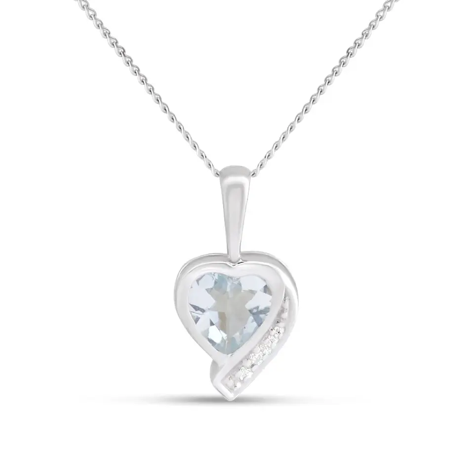 9ct White Gold Aquamarine And Diamond Heart Necklace - R83102