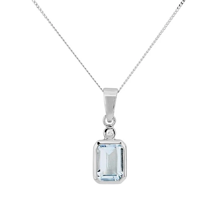 9ct White Gold Aquamarine And Diamond Necklace - D97120