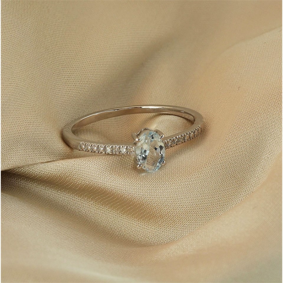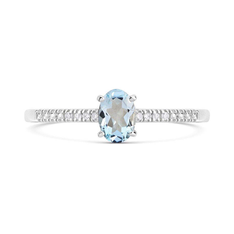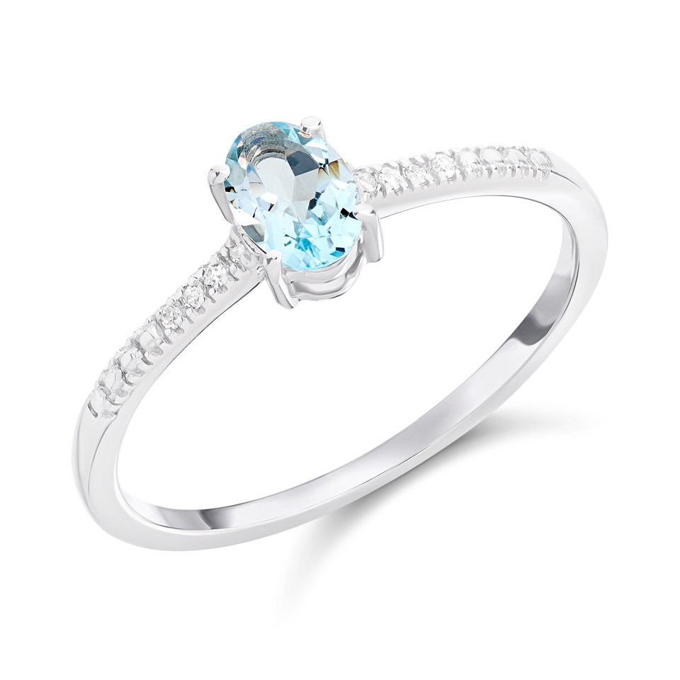 9ct White Gold Aquamarine And Diamond Ring - R0992