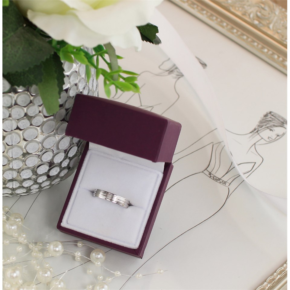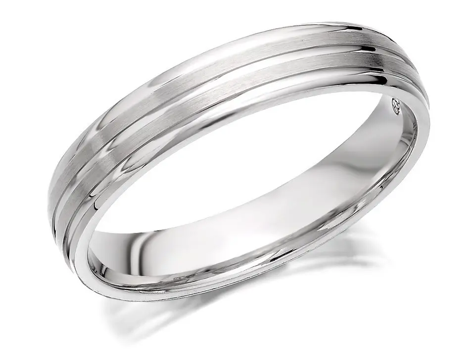 9ct White Gold Banded Wedding Ring - 4mm - R2492