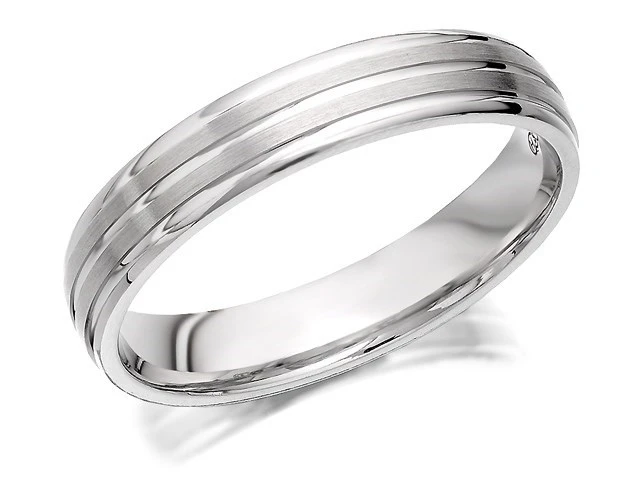 9ct White Gold Banded Wedding Ring - 4mm - Size H Only - Z50991